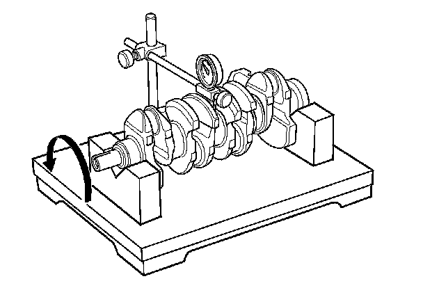 7. Check the total runout with the crankshaft supported on V-blocks.