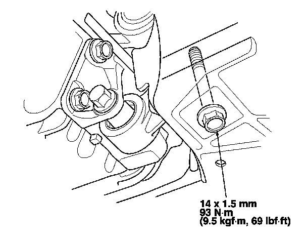14. Tighten the transmission mounting bolt and nuts.