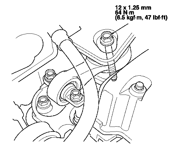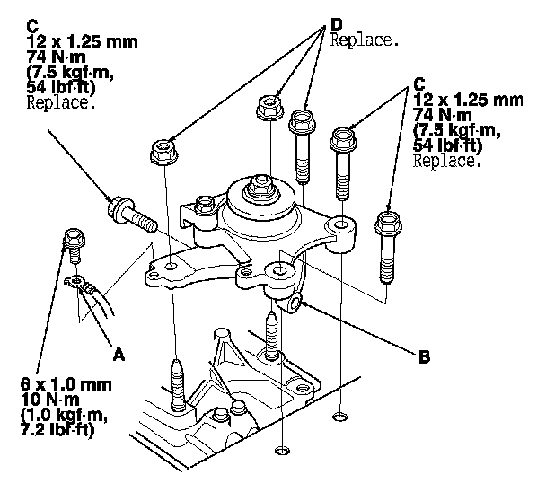 13. Install the transmission mount, and tighten the new transmission mount mounting bolts (C).