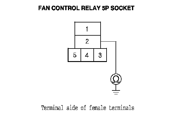 9. Check for continuity between the fan control relay 5P socket terminal No. 2 and body ground.