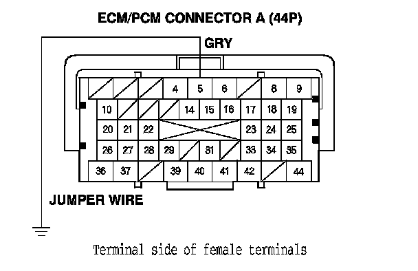 13. Connect the ECM/PCM connector A (44P) terminal No. 5 to body ground with a jumper wire.