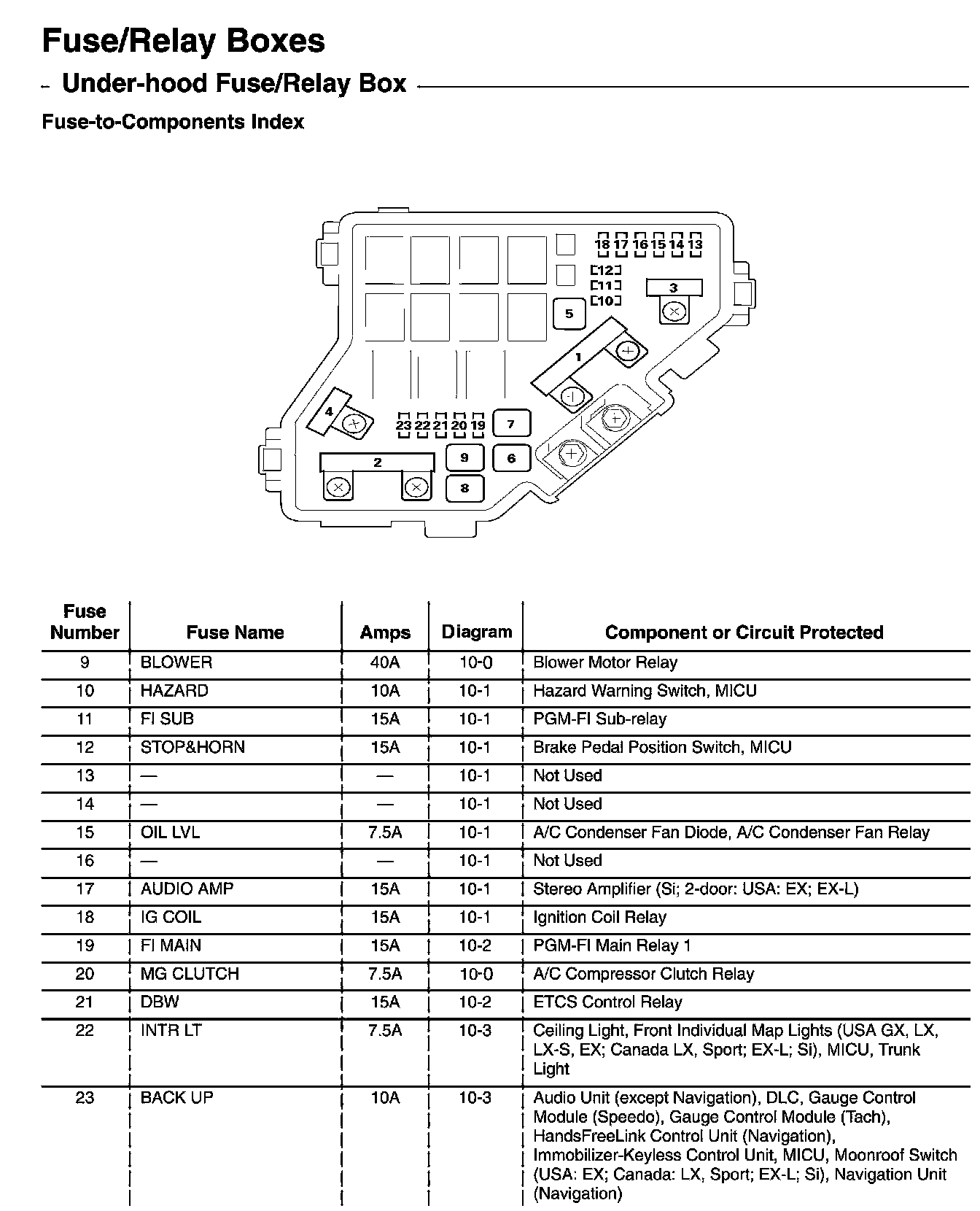 Under-Hood Fuse/Relay Box - Fuse-to-Components Index