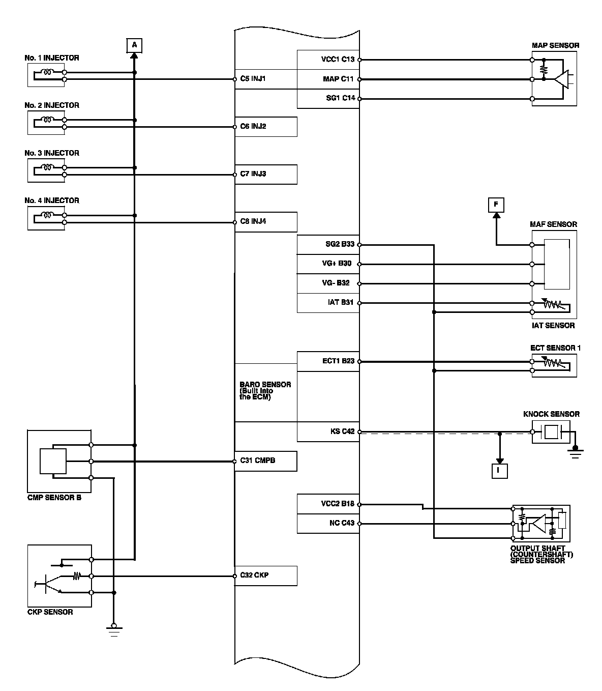 ECM Inputs and Outputs at Connector C (circle) (44P)