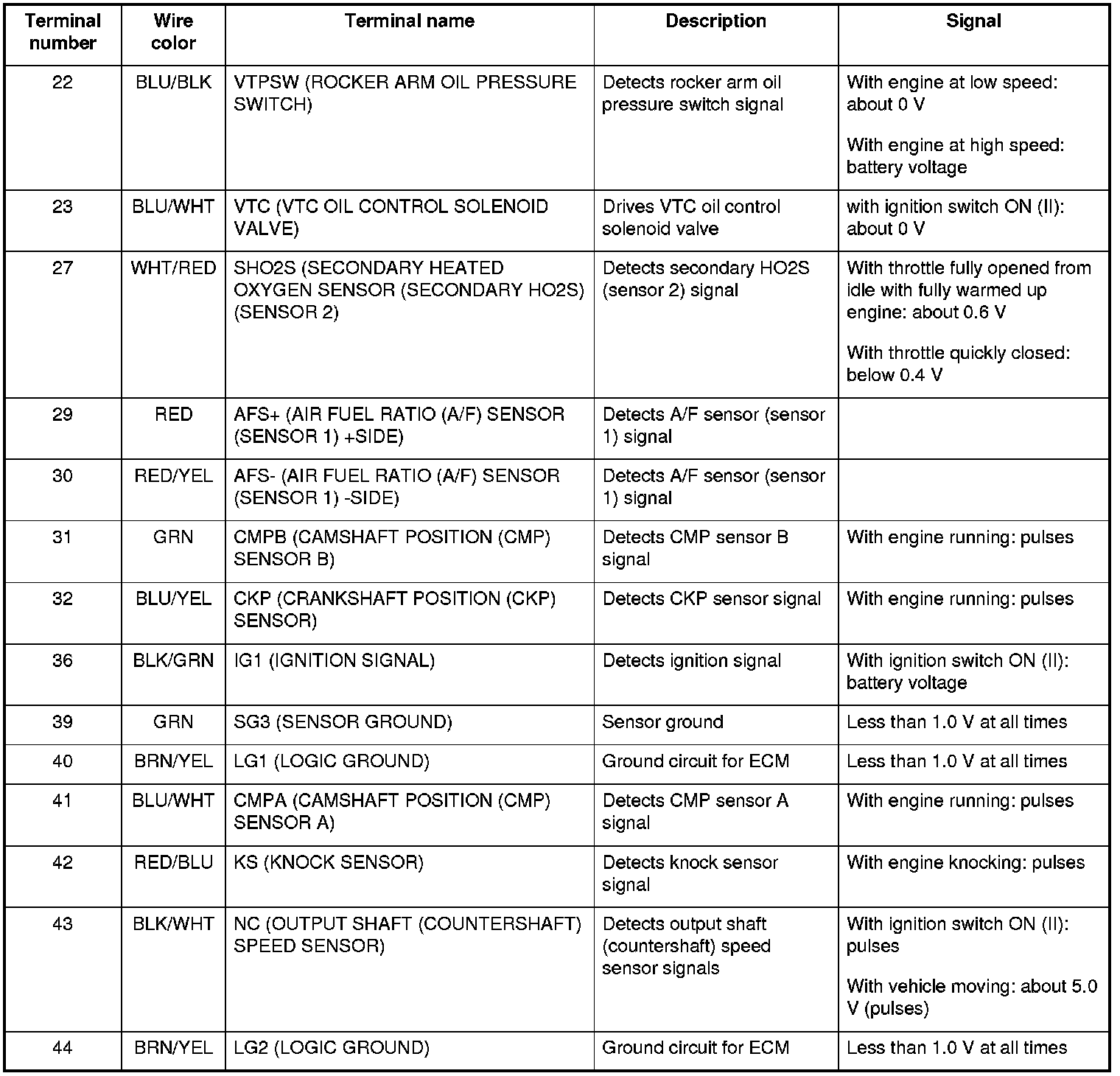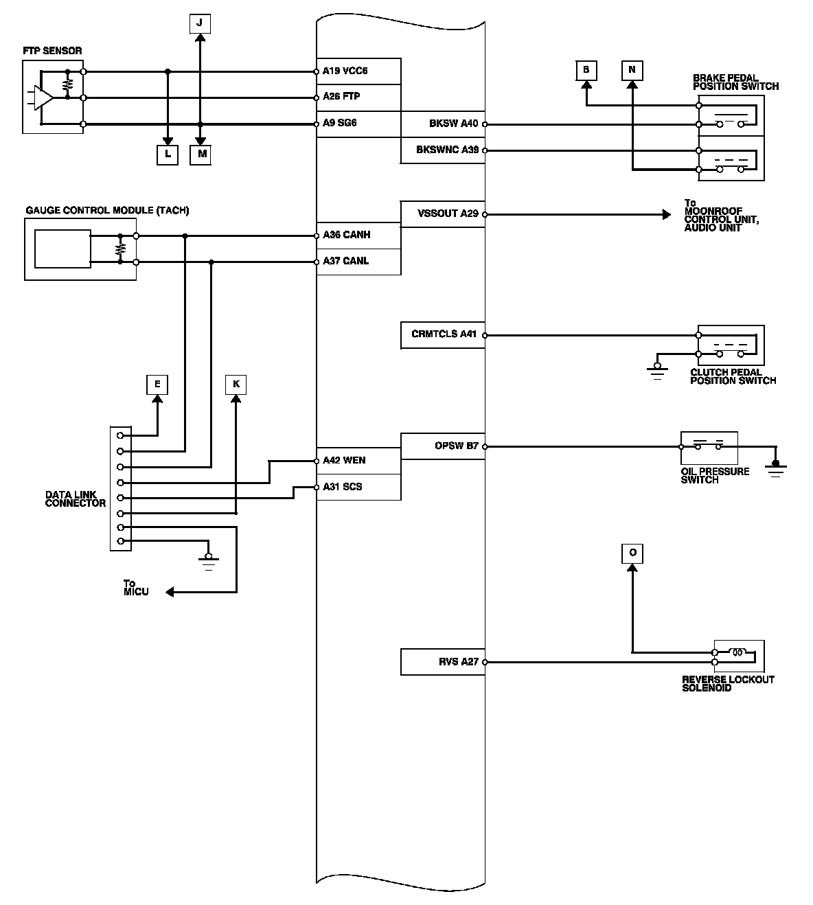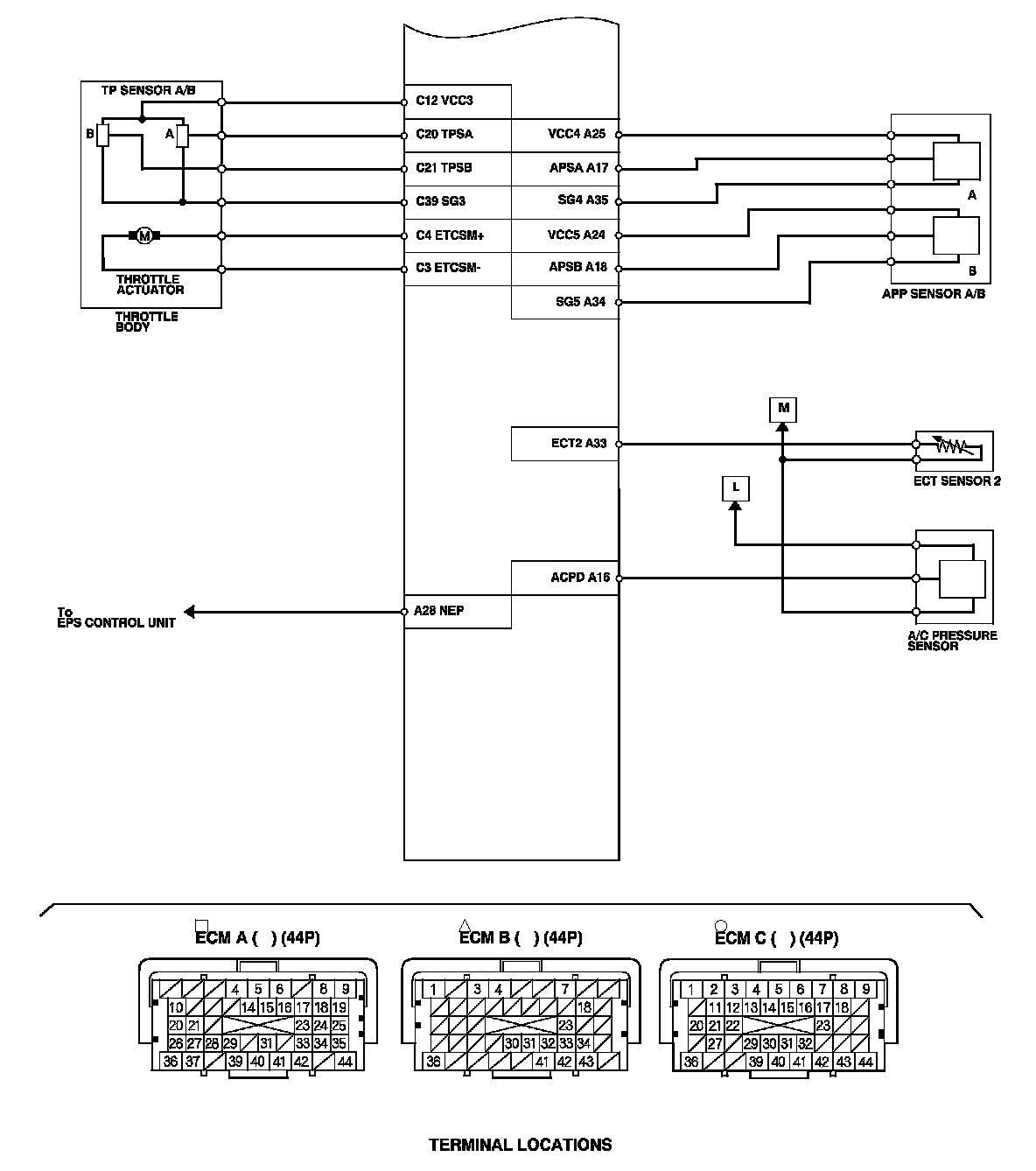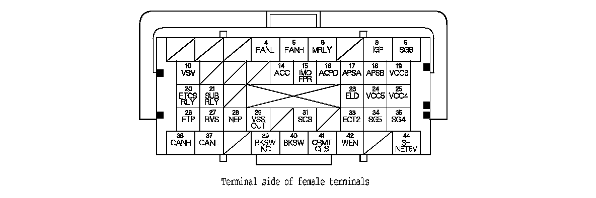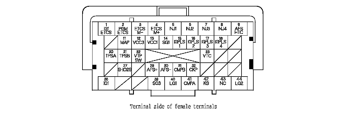 ECM Inputs and Outputs at Connector A (square) (44P)