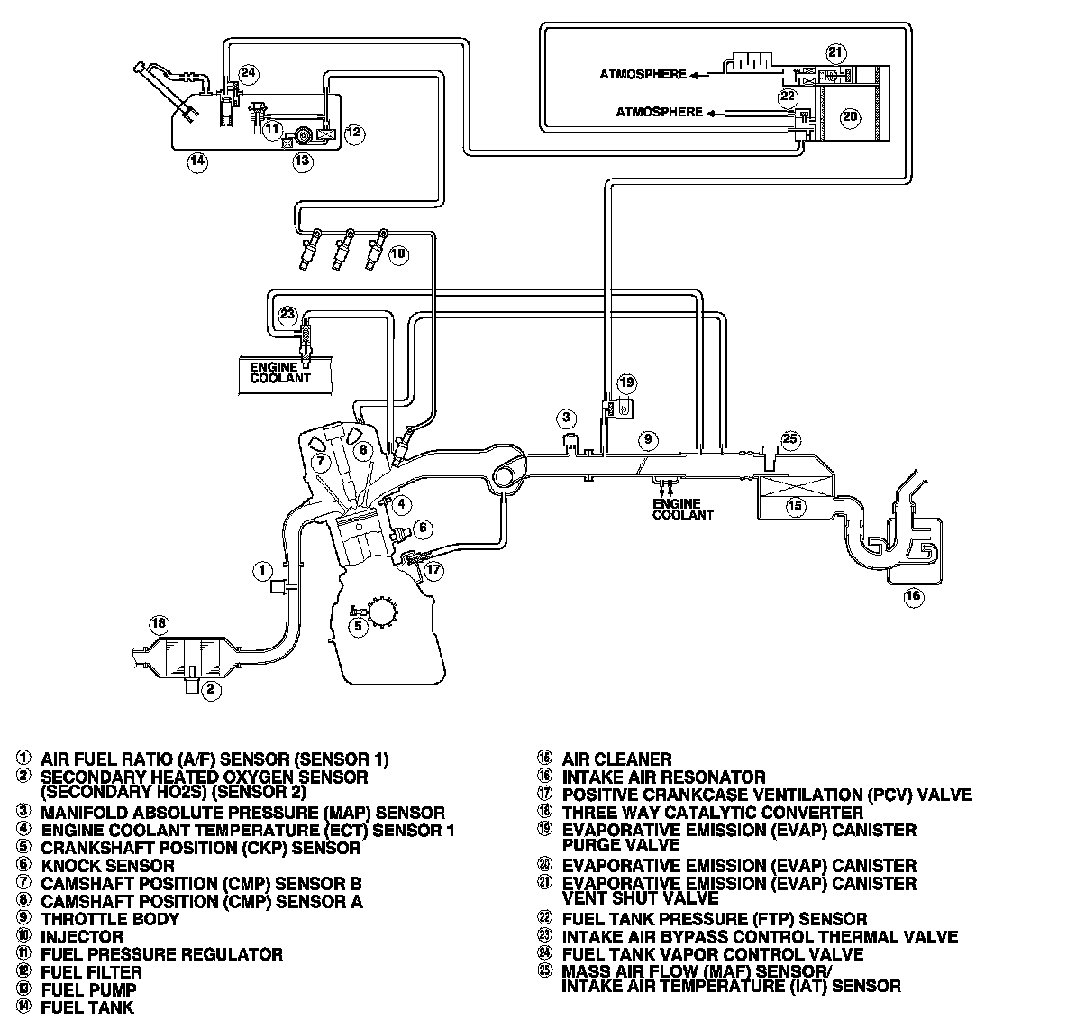The EVAP controls minimize the amount of fuel vapor escaping into the atmosphere. Vapor from the fuel tank is temporarily stored in the EVAP canister until it can be purged from the canister into the engine and burned.