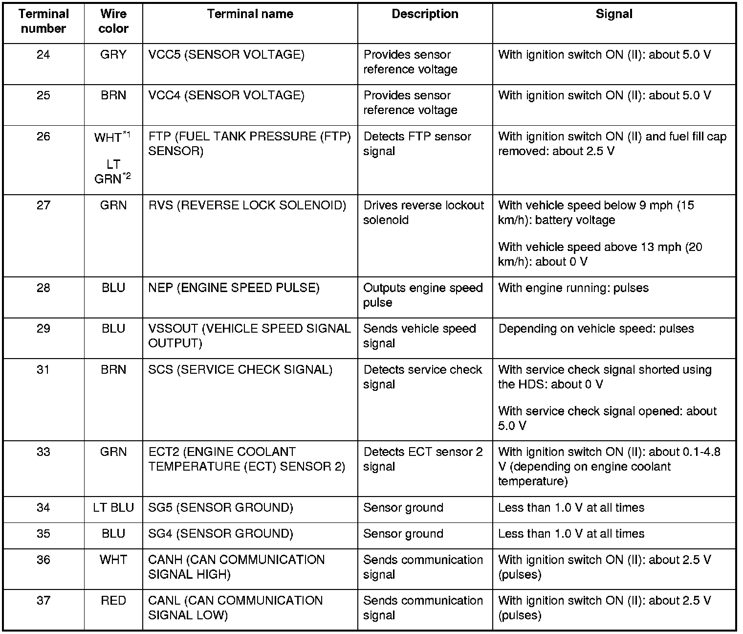 As the accelerator pedal position changes, the sensor varies the signal voltage to the ECM.