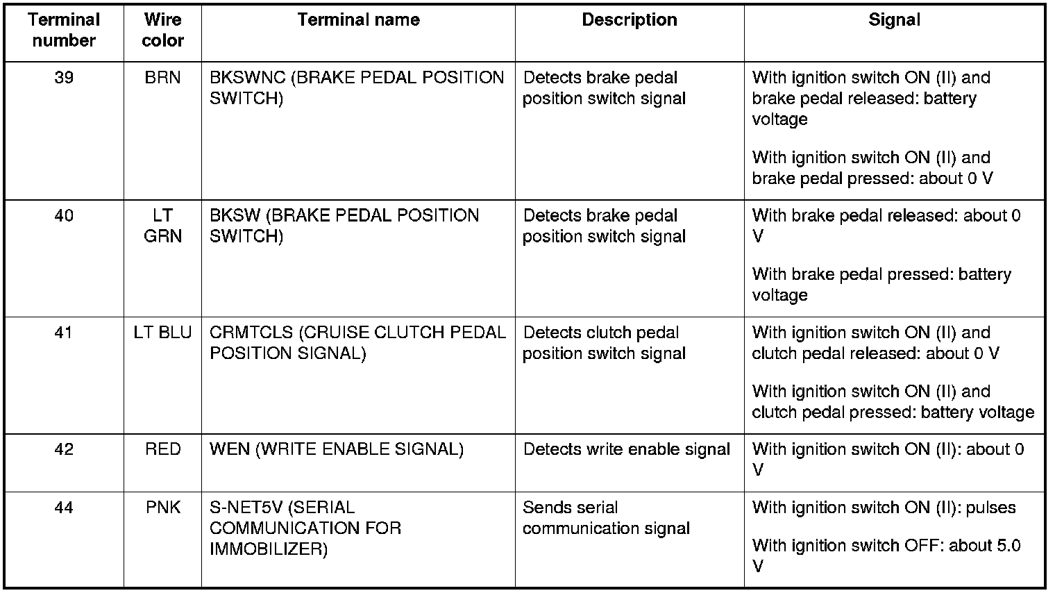 The brake pedal position switch signals the ECM when the brake pedal is pressed.