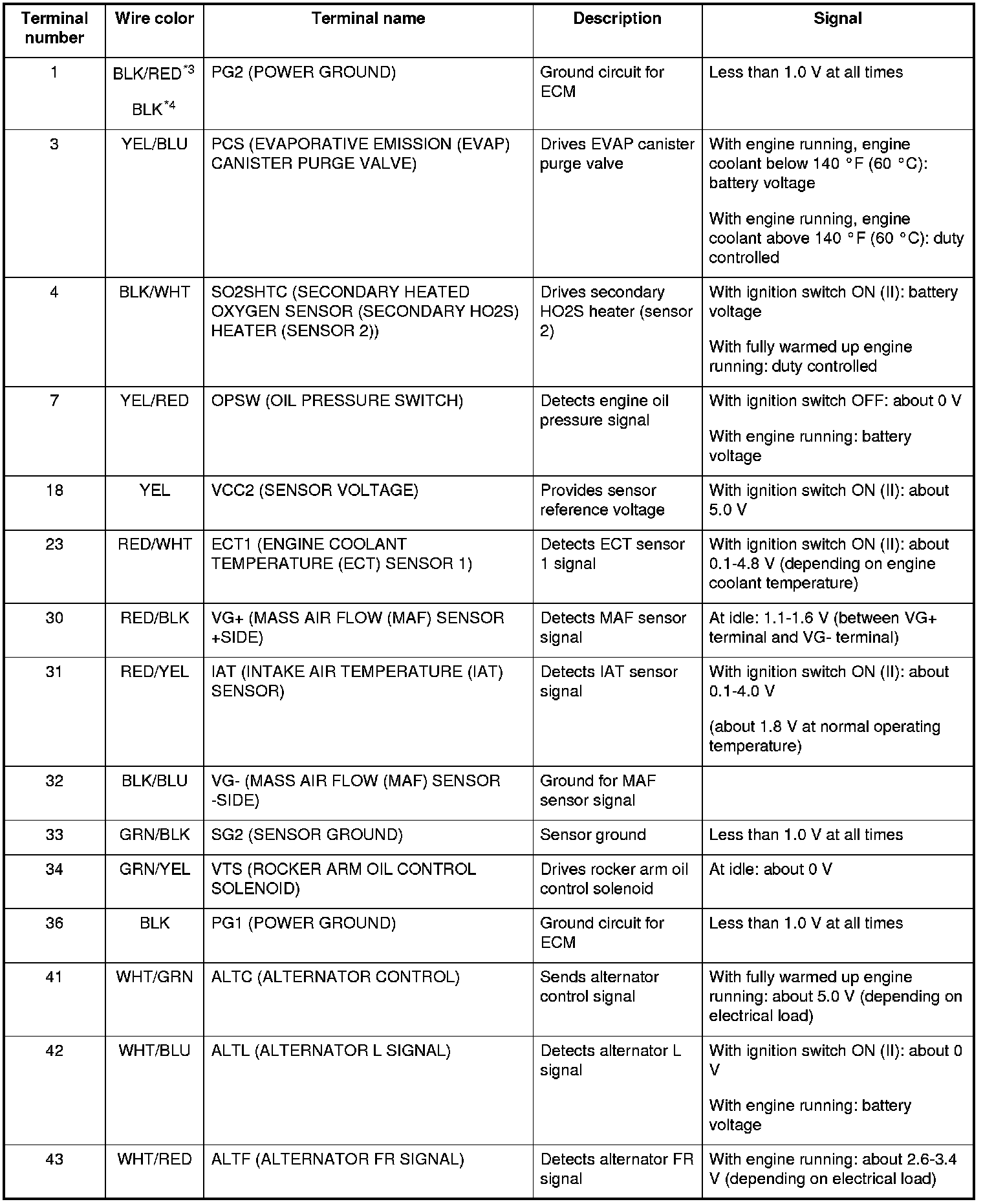 When an abnormality occurs in the signal from a sensor or another control unit, the ECM ignores that signal and substitute a pre-programmed value that allows the engine to continue running. This causes a DTC to be stored and the MIL to come on.