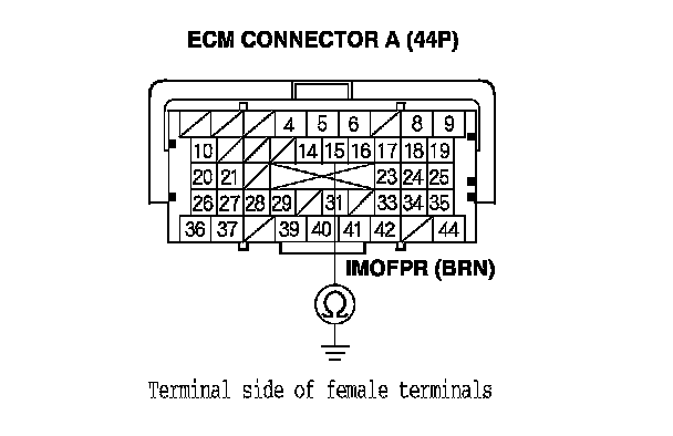 17. Check for continuity between body ground and ECM connector terminal A15.