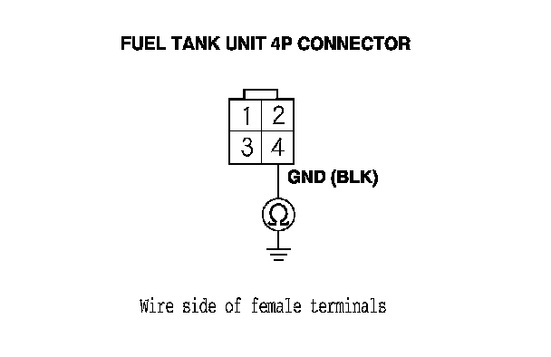 37. Check for continuity between fuel tank unit 4P connector terminal No. 4 and body ground.