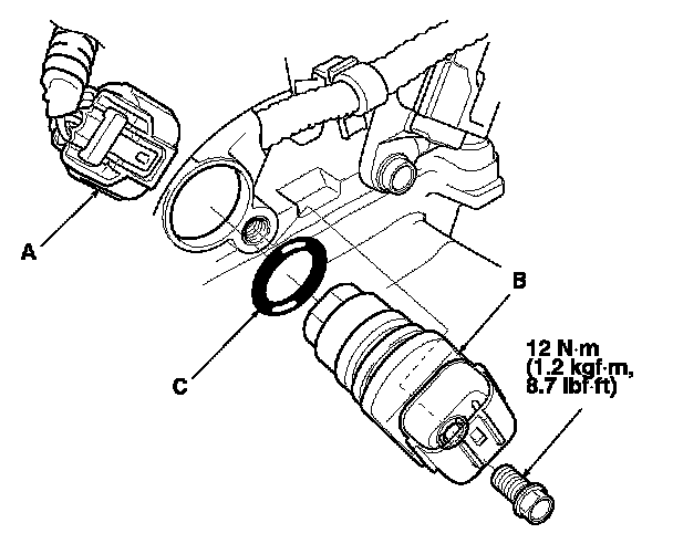 4. Install the parts in the reverse order of removal with a new O-ring (C).