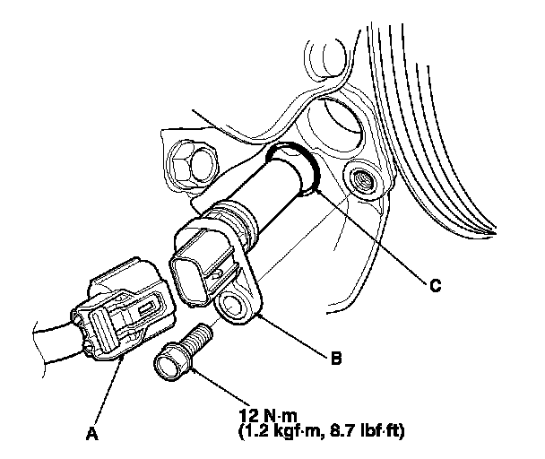 3. Install the parts in the reverse order of removal with a new O-ring (C).