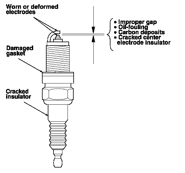 1. Remove the spark plugs, then inspect the electrodes and ceramic insulator.