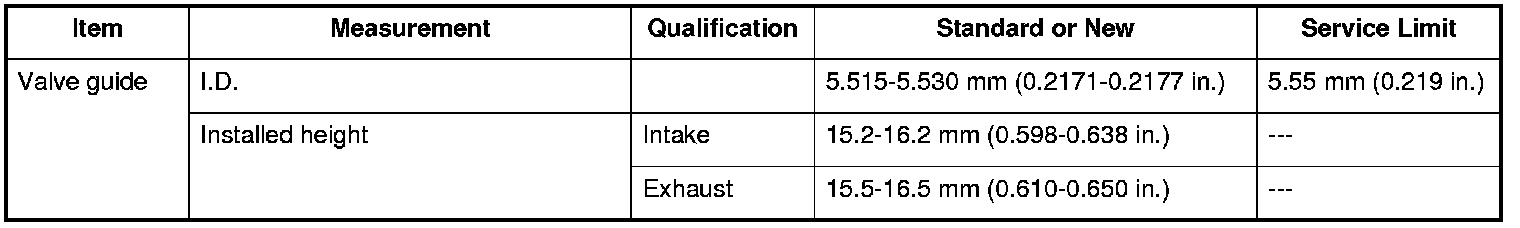 Valve Guide Specifications
