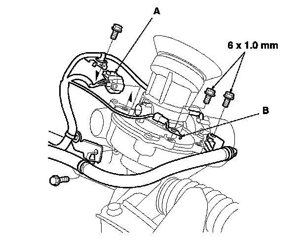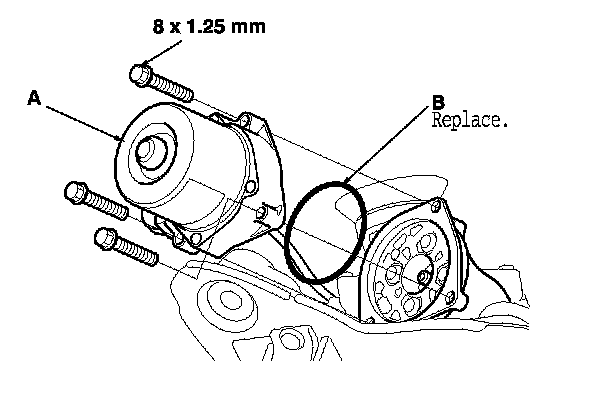 3. Remove the EPS motor (A) from the steering gearbox, then remove the O-ring (B) and discard it.