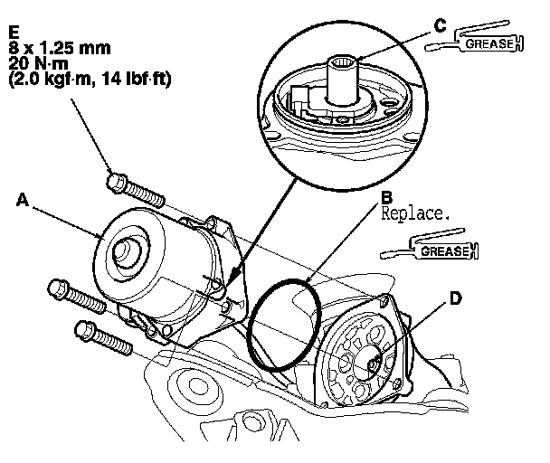 2. Apply a thin coat of silicone grease to the new O-ring (B), and carefully fit it on the EPS motor.