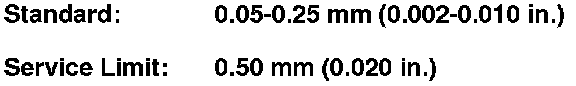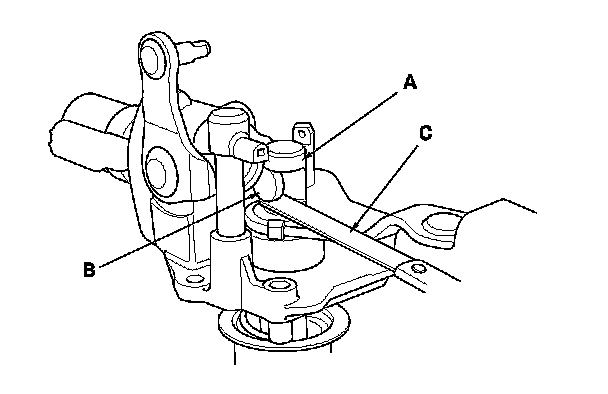1. Measure the clearance between the change lever (A) and the select lever (B) with a feeler gauge (C). If the clearance exceeds the service limit, go to step 2.