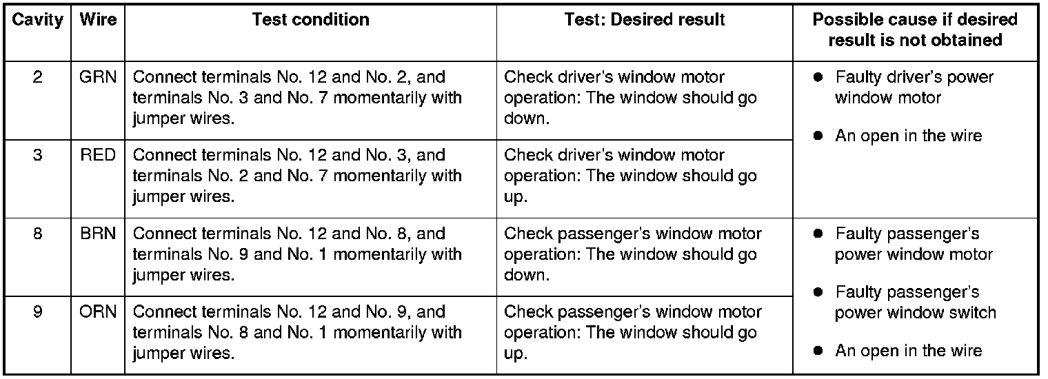 Power Window Master Switch Input Test (2-Door)