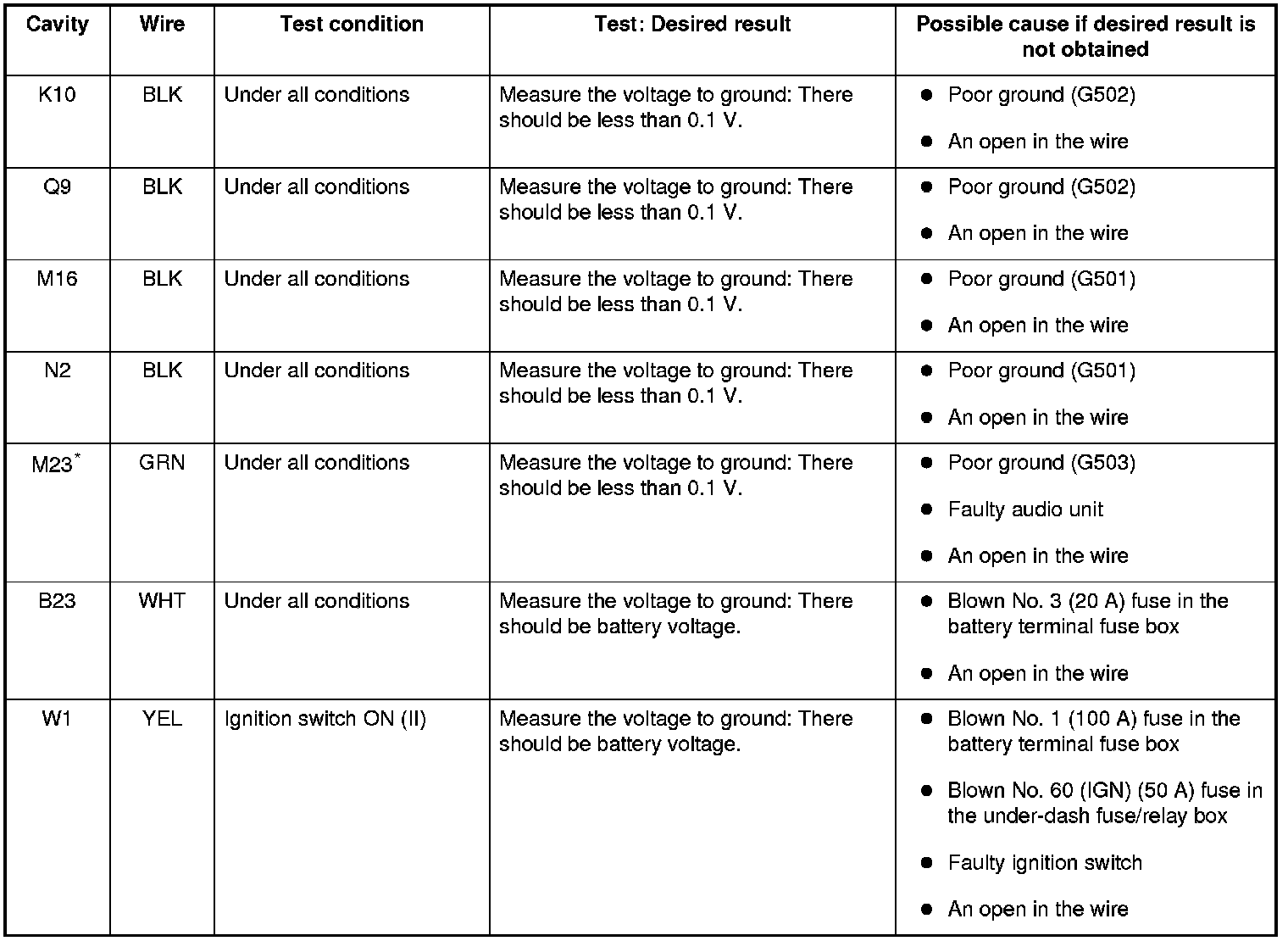 - Before testing, check the No. 1 (7.5 A), No. 20 (15 A), No. 22 (7.5 A), No. 27 (30 A), No. 35 (10 A), No. 36 (15 A), No. 49 (15 A), No. 50 (15 A), and No. 60 (50 A) fuses in the under-dash fuse/relay box.