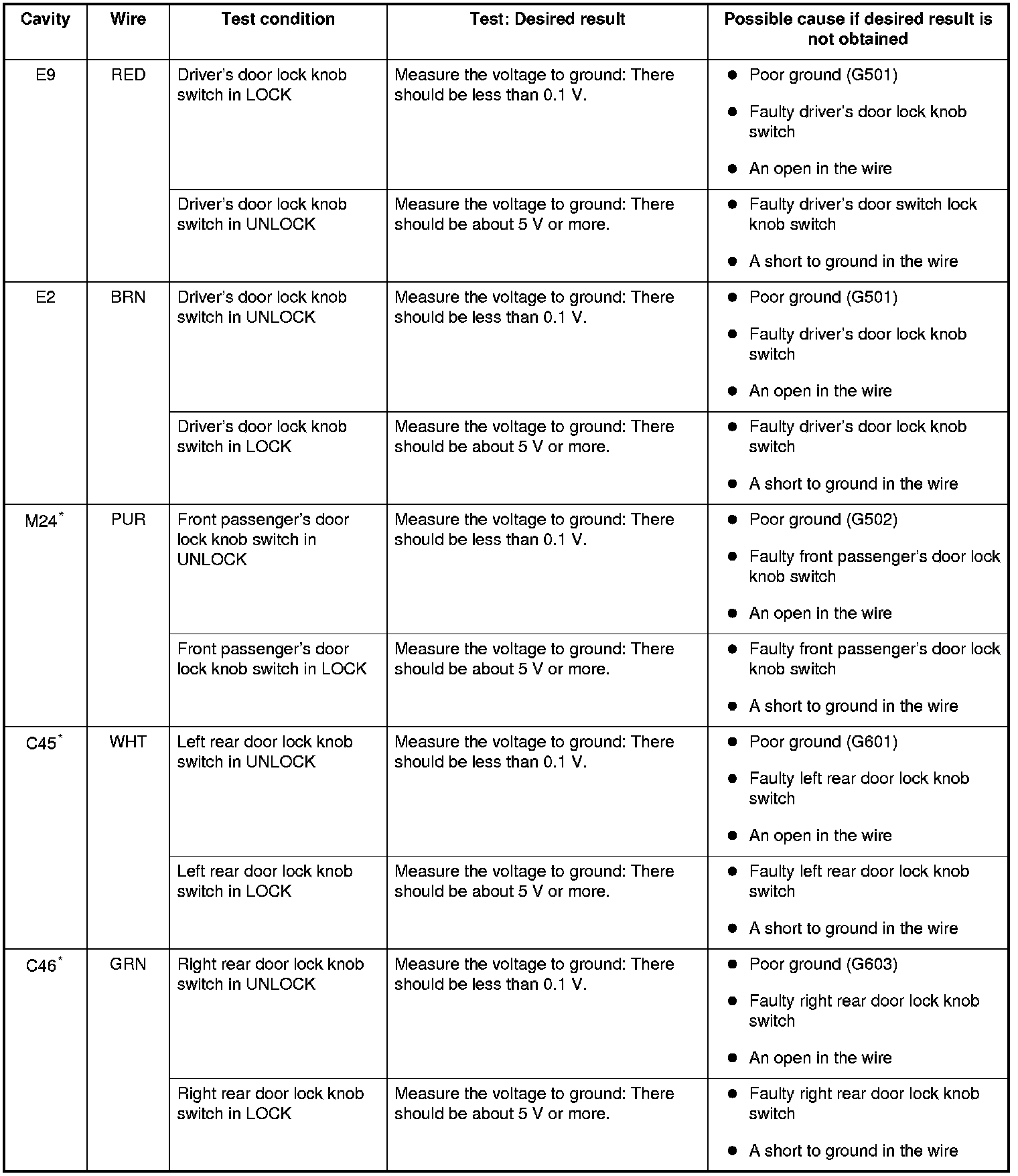 6. Reconnect the connectors to the under-dash fuse/relay box, and do these input tests at the following connectors.