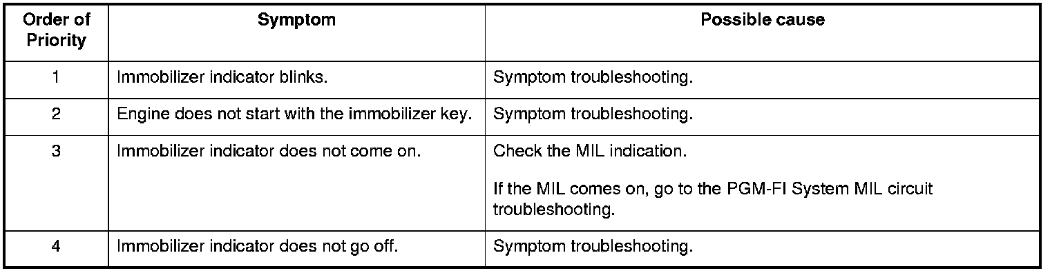 Immobilizer System Symptom Troubleshooting