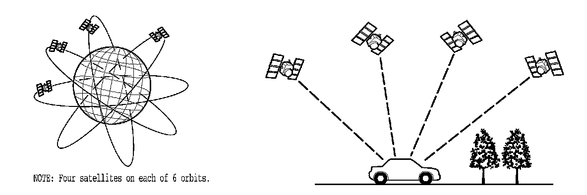 The global positioning system (GPS) enables the navigation system to determine the current position of the vehicle by using the signals transmitted from the satellites in orbit around the earth. The satellites transmit the satellite identification signal, orbit information, transmission time signal, and other information. When the GPS receiver receives a signal from four or more satellites simultaneously, it calculates the current position of the vehicle based on the distance to each satellite and the satellite's position in its respective orbit.
