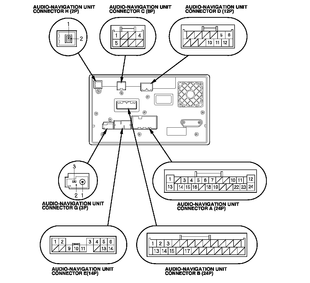 Audio-navigation Unit Inputs and Outputs for Connector H (2P)
