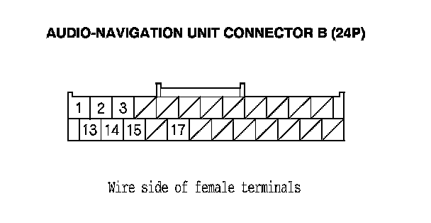 10. Check for continuity between body ground and audio-navigation unit connector B (24P) according to the table.