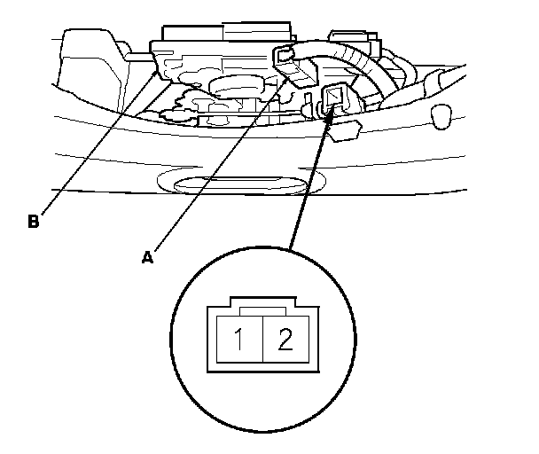 3. Disconnect the 2P connector (A) from the tailgate latch assembly (B).