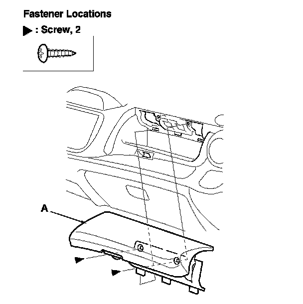 2. Remove the screws, then remove the passenger's upper tray lid (A).