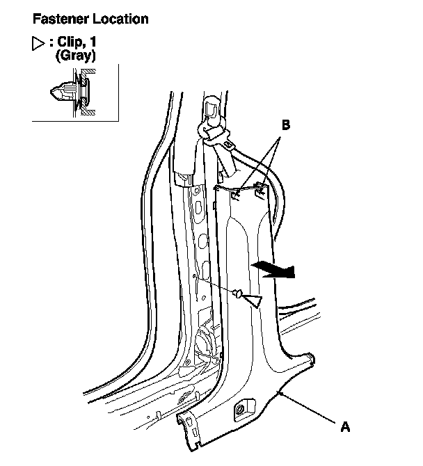-1 Pull the bottom of the trim back by hand to detach the lower clip (B).