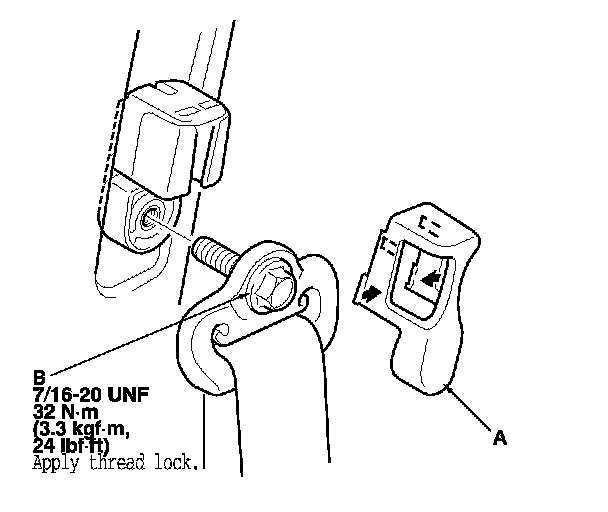 5. Remove the upper anchor cover (A), and remove the upper anchor bolt (B).