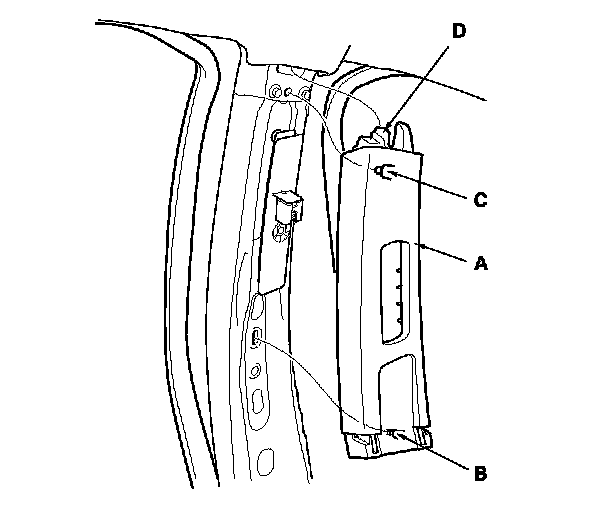 6. Remove the B-pillar upper trim (A).