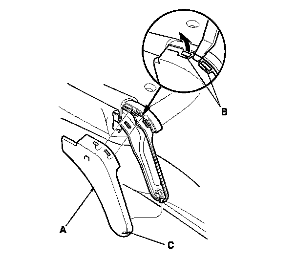 -1 Release the upper hooks (B) of the cover with the appropriate trim tool.