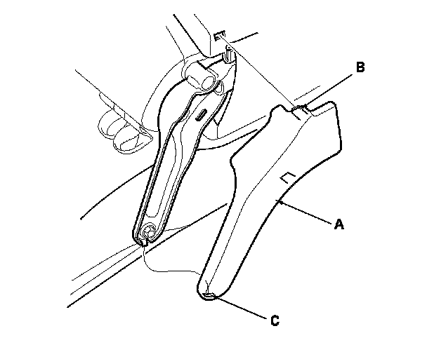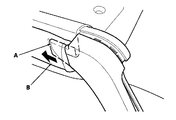 - When installing the center cover, insert the upper portion (A) of the cover into the seat cushion cover (B) securely.