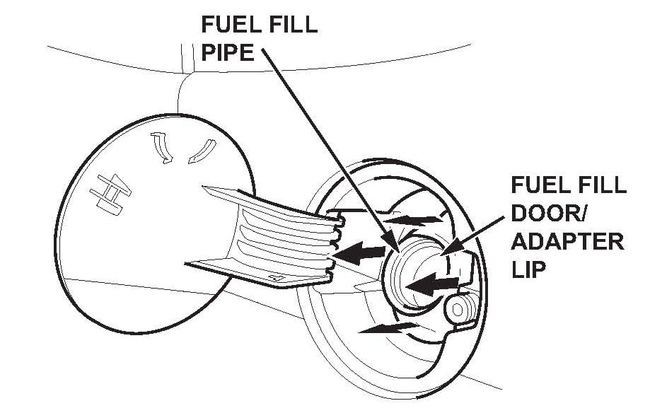 2. Pull the fuel fill door/adapter lip off the fuel fill pipe.
