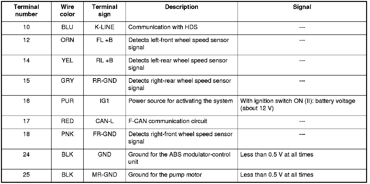 ABS Modulator-control Unit Inputs and Outputs for 25P Connector