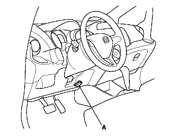 2. With the ignition switch in LOCK (0), connect the HDS to the data link connector (DLC) (A) under the driver's side of the dashboard.