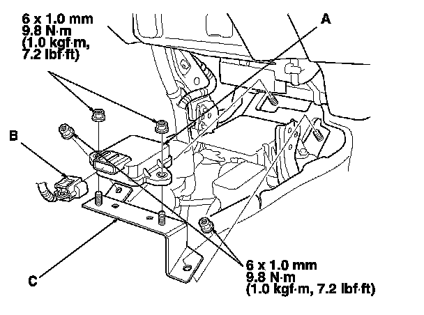 5. Check for deformation in the bracket (C). If necessary replace it.