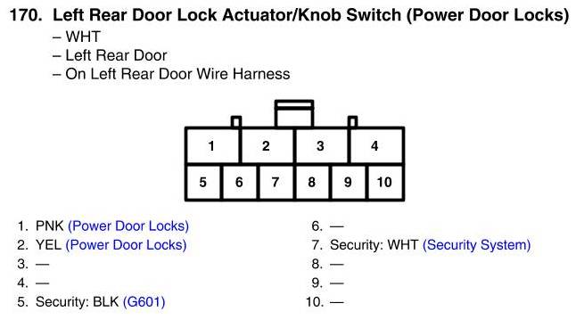 Left Rear Door Lock Actuator/Knob Switch Connector View (Power Door Locks)