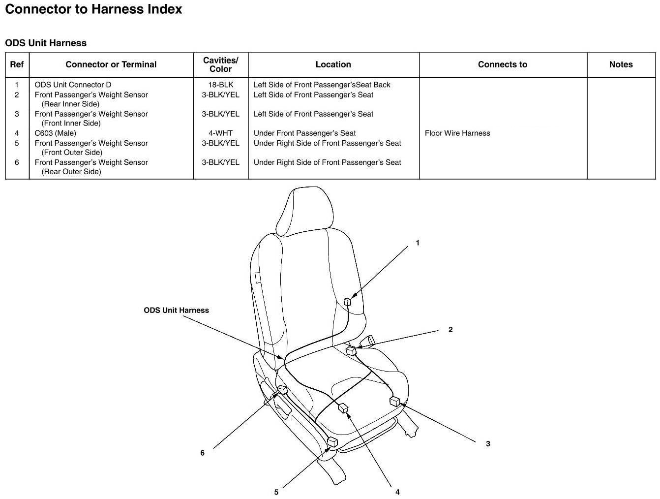 ODS Unit Harness Connector And Harness Locations