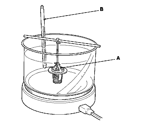 2. Heat the water, and check the temperature with a thermometer. Check the temperature when the thermostat first opens, then check the temperature again when the thermostat is fully open.