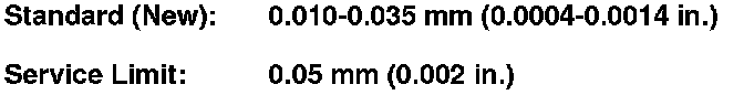 7. Calculate the difference between the cylinder bore diameter and the piston diameter. If the clearance is near or exceeds the service limit, inspect the piston and engine block for excessive wear.