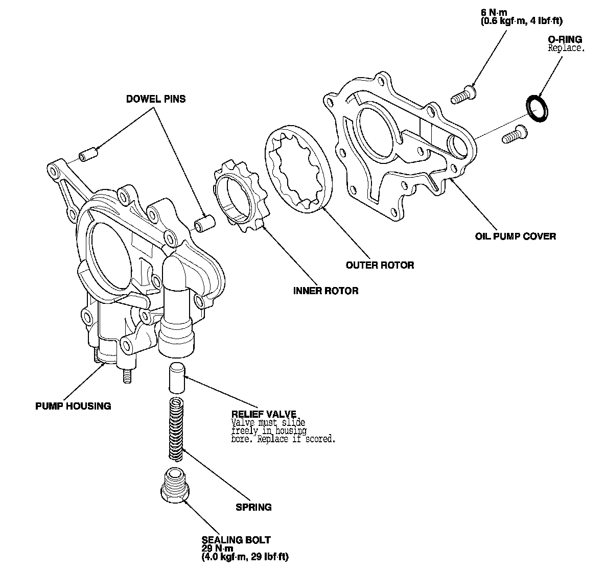 1. Remove the screws from the oil pump housing, then separate the pump housing and pump cover.