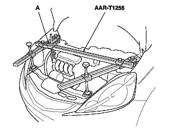 4. Install the A and Reds engine support hanger (AAR-T1256), then attach the hook to the slotted hole in the support eyelet. Tighten the wing nut (A) by hand to lift and support the engine.