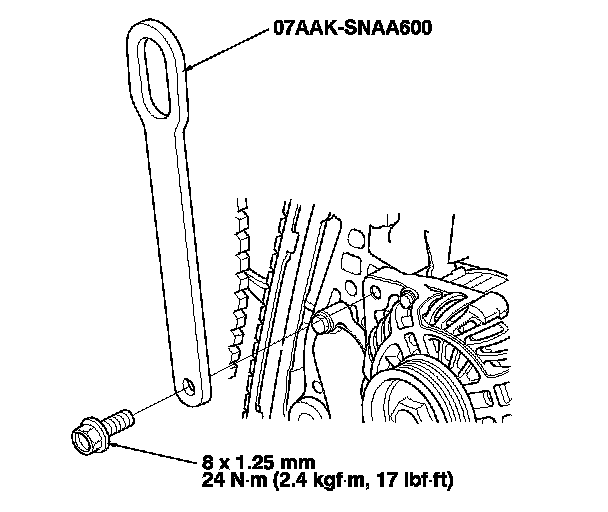 3. Remove the alternator mounting bolt, then install the support eyelet.
