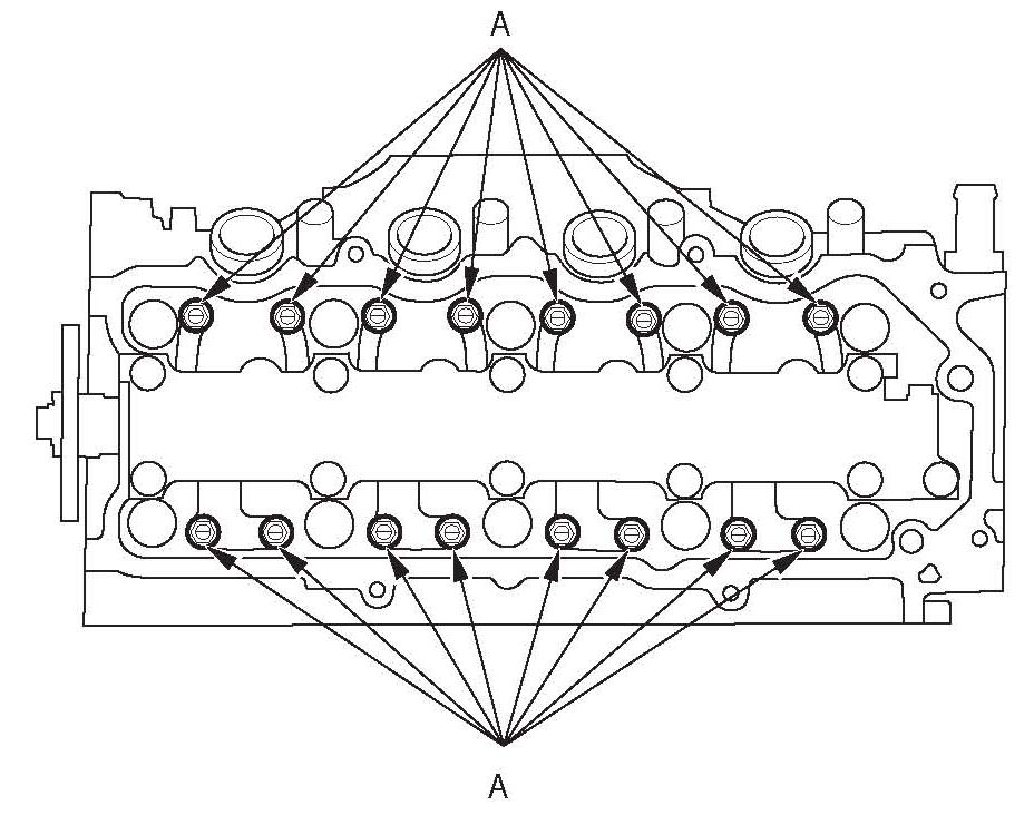 ^ Remove the six cylinder head cover bolts.