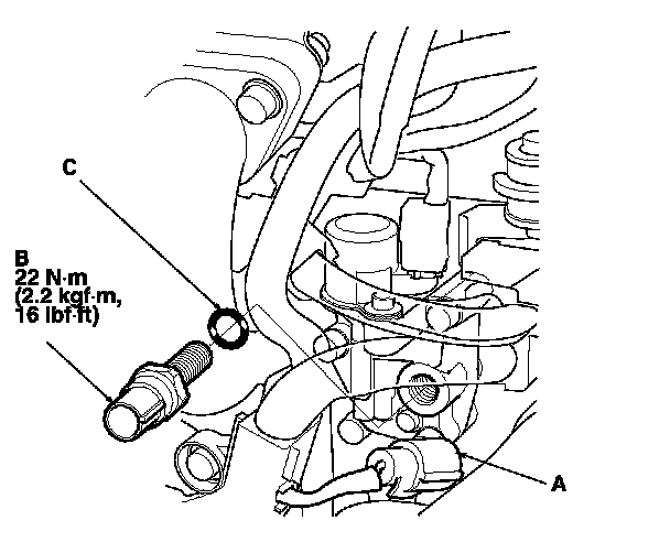 3. Install the parts in the reverse order of removal with a new O-ring (C).