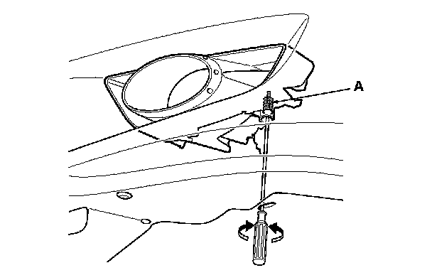 Adjust the fog lights at the adjuster (A).