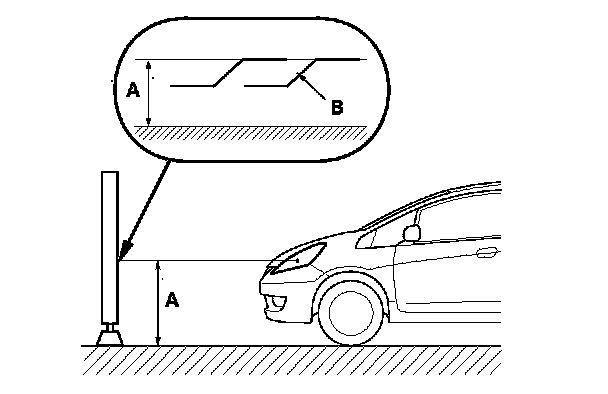 2. Park the vehicle in front of a wall or a screen (A).